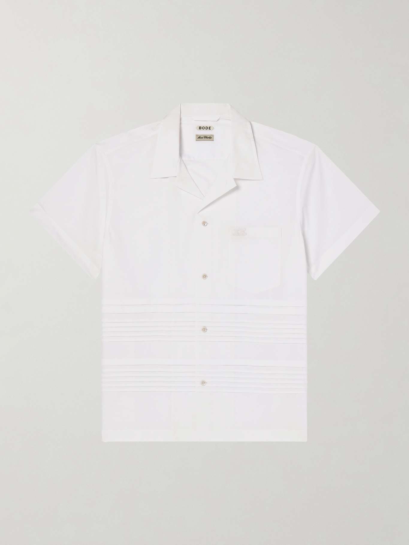 Rows of neat pintucks lend textural interest to BODE's 'Chamomile' shirt. Made from crisp cotton-poplin, it has a neat camp collar and a chest patch pocket embroidered with the label's logo in tonal thread.