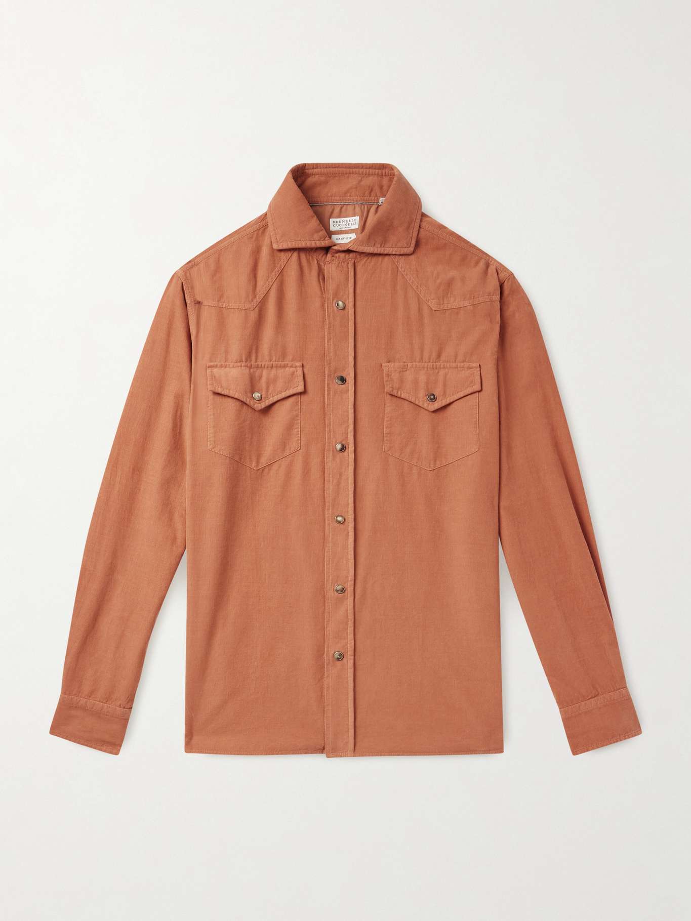 Brunello Cucinelli's shirt has been made in Italy from lightweight, fine-wale cotton-corduroy and is cut for an 'easy' fit. The pointed yoke, flap pockets and snap fastenings reference Western styles.