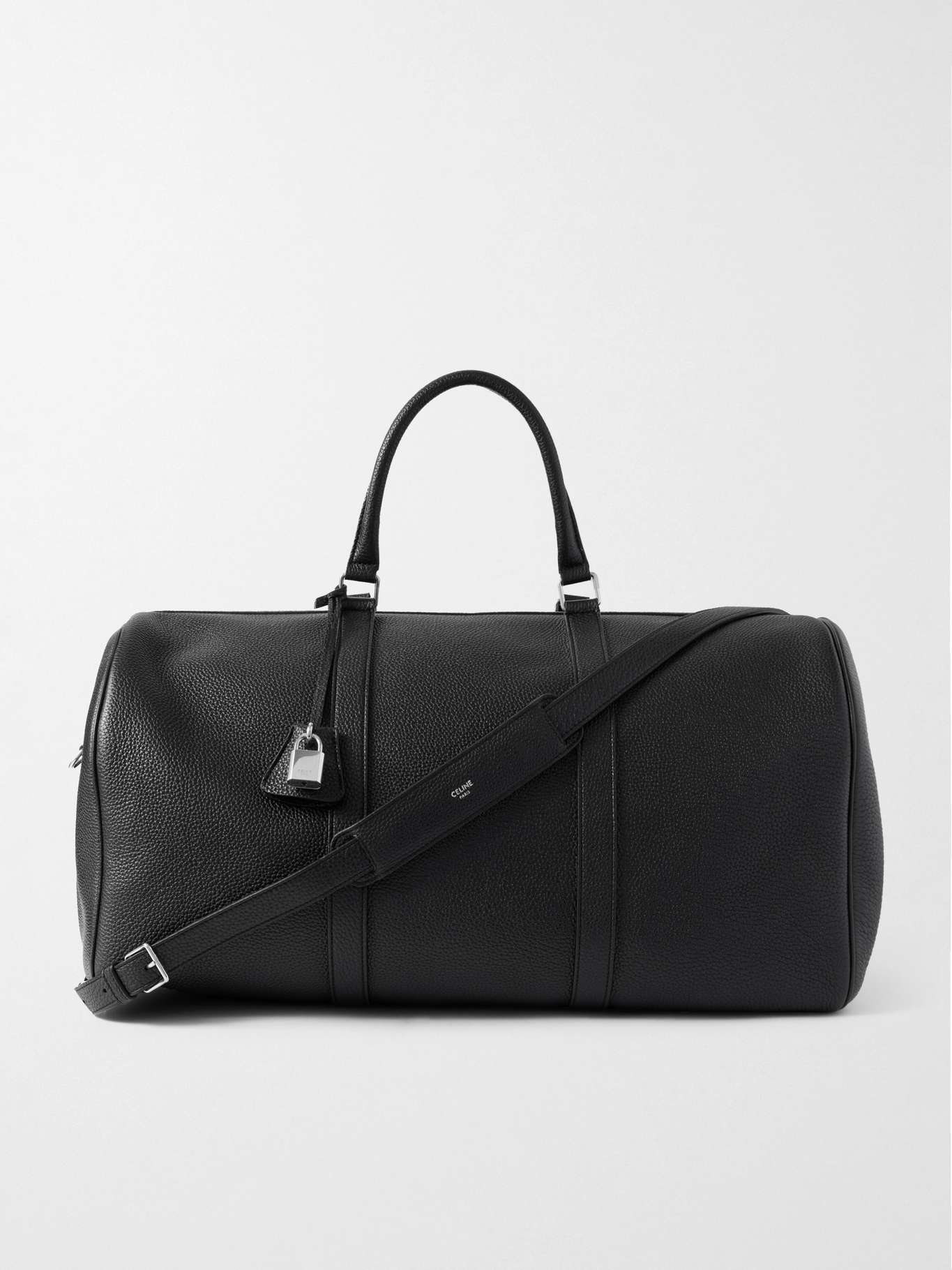 CELINE's holdall comes with a functional padlock with its own set of keys. Constructed like a bowling bag, it's made from panels of full-grain leather and suspended from an adjustable shoulder strap you can wear across the body. Inside, there's enough room for a weekend away – just add your laptop, Dopp kit and spare pair of shoes.
