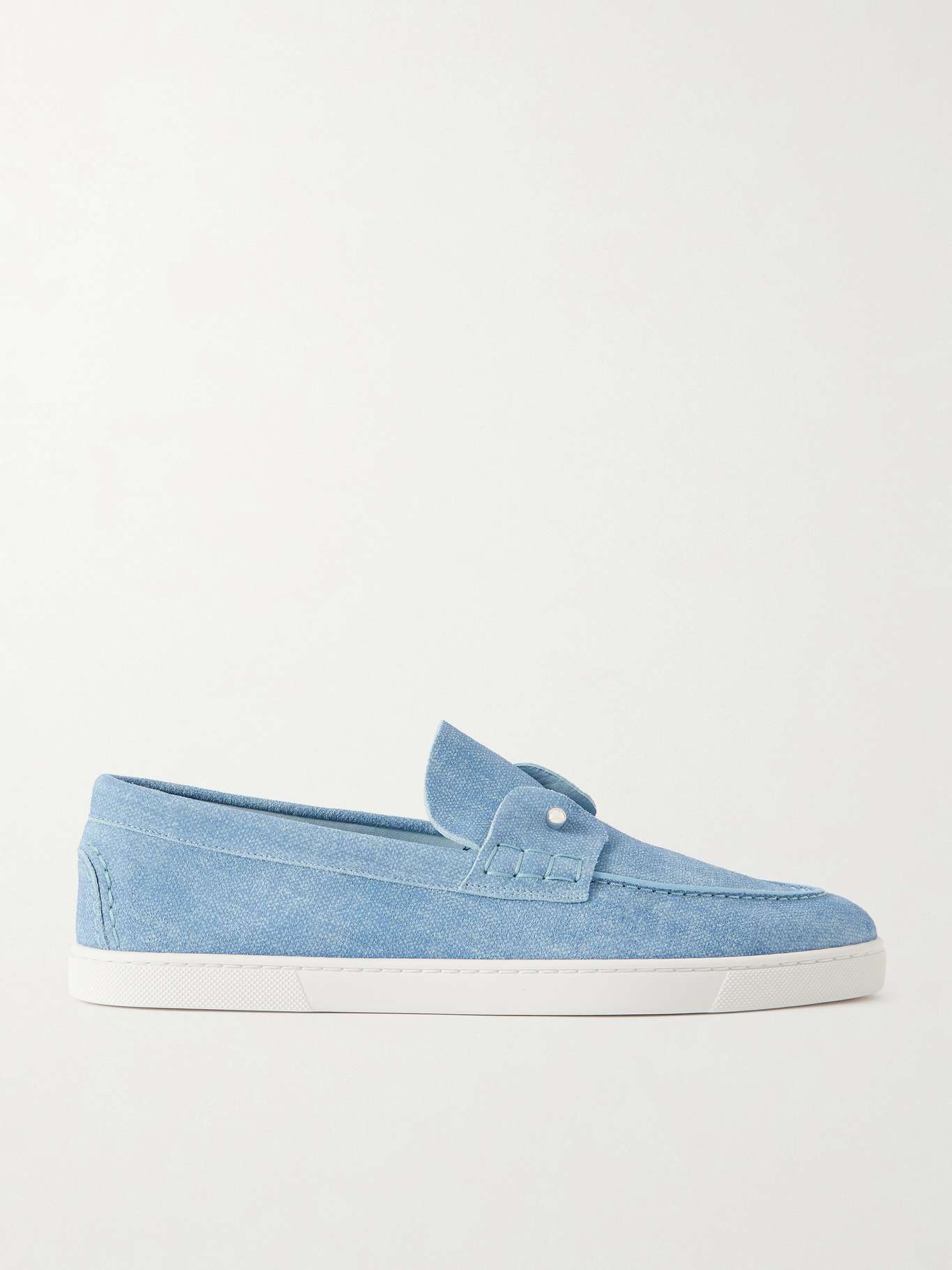 Christian Louboutin's 'Chambeliboat' loafers are pierced with a silver-tone barbell in lieu of a traditional penny slot. They've been made in Italy from denim-effect suede and set on the same rubber soles as the label's comfortable sneakers.