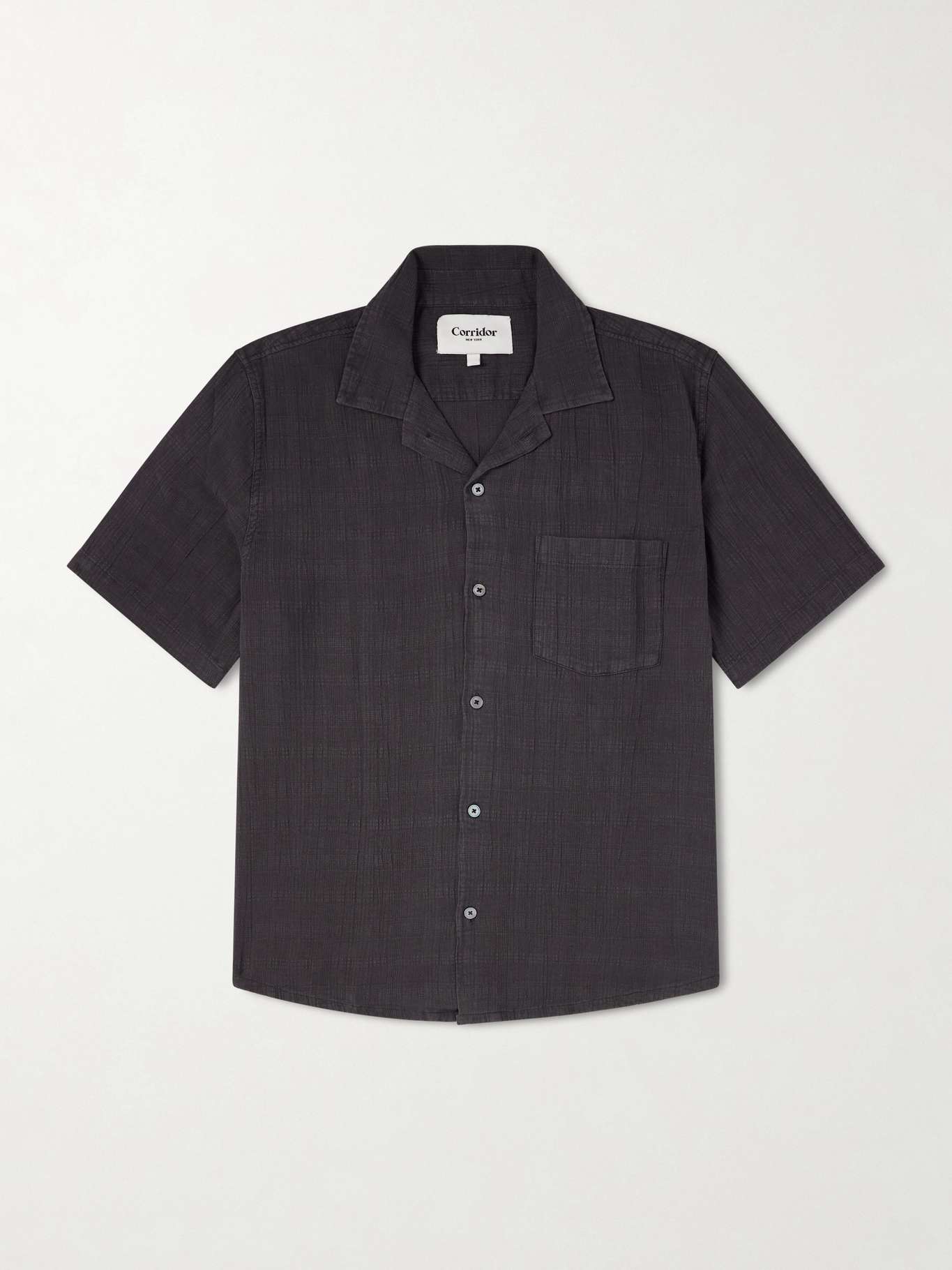 Cut from cotton with a checked texture, Corridor's shirt has a convertible collar, short sleeves and a chest patch pocket in a regular fit. It pairs well with tonal, textured pieces for subtle contrast in handle and light.