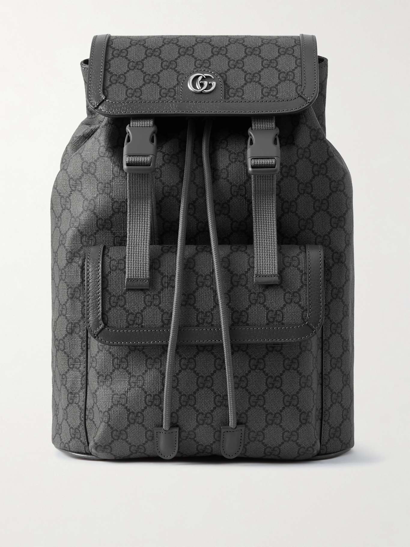 GUCCI Ophidia Leather-Trimmed Monogrammed Coated-Canvas Backpack
