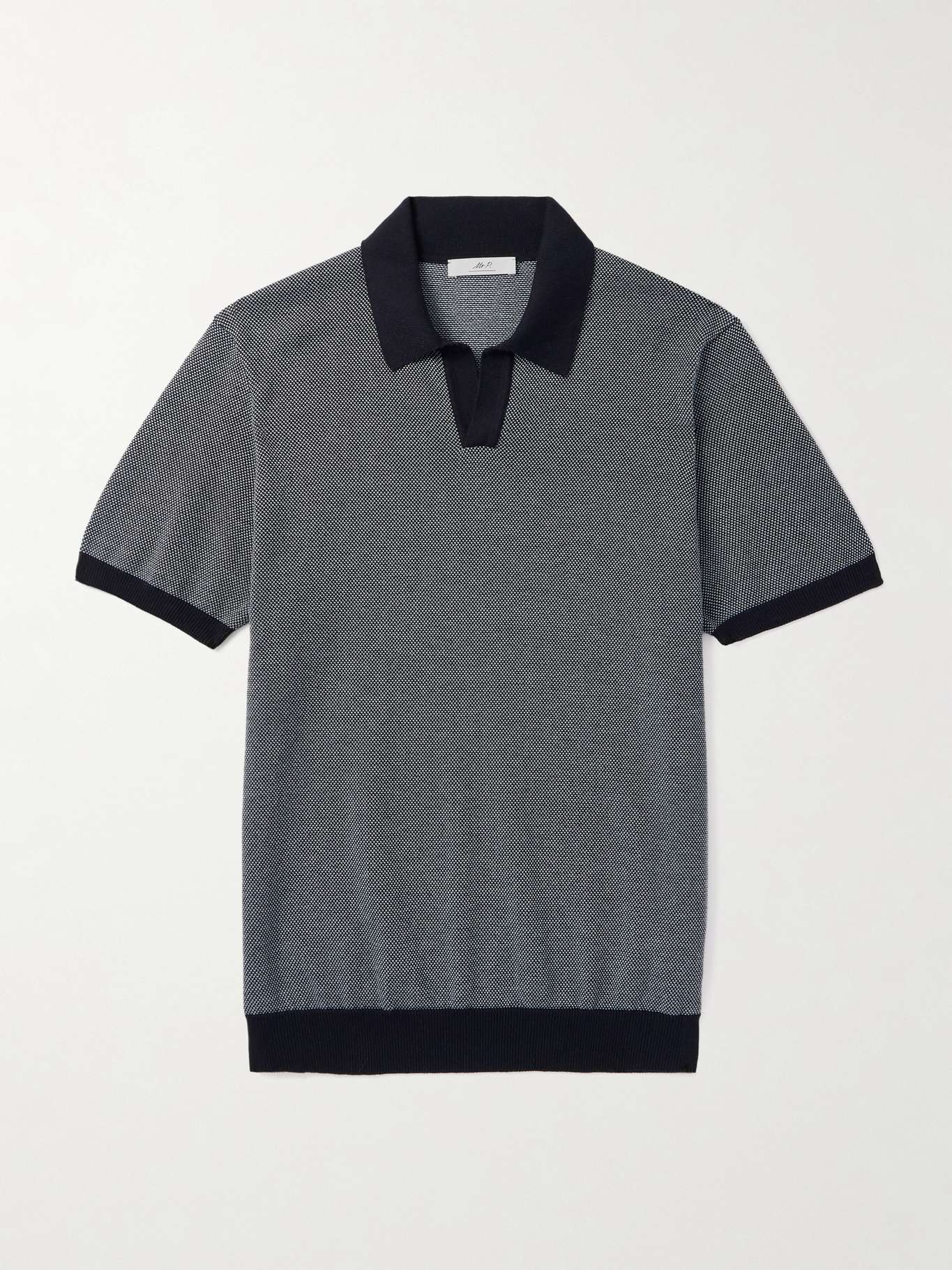 DESIGNED BY MR PORTER. Mr P.'s polo shirt is honeycomb-knitted with contrasting threads, accentuating the pattern's intricacy. Made from breathable cotton, it has a relaxed open collar and ribbed trims.