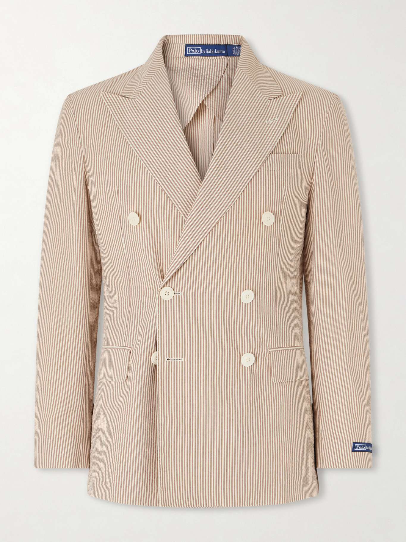 POLO RALPH LAUREN Double-Breasted Striped Cotton Suit Jacket