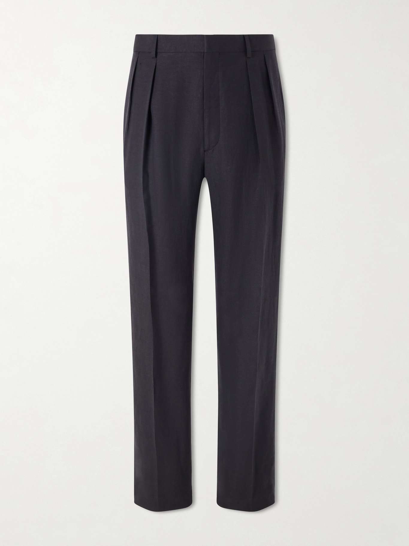 RALPH LAUREN PURPLE LABEL Straight-Leg Pleated Silk and Linen-Blend Trousers
