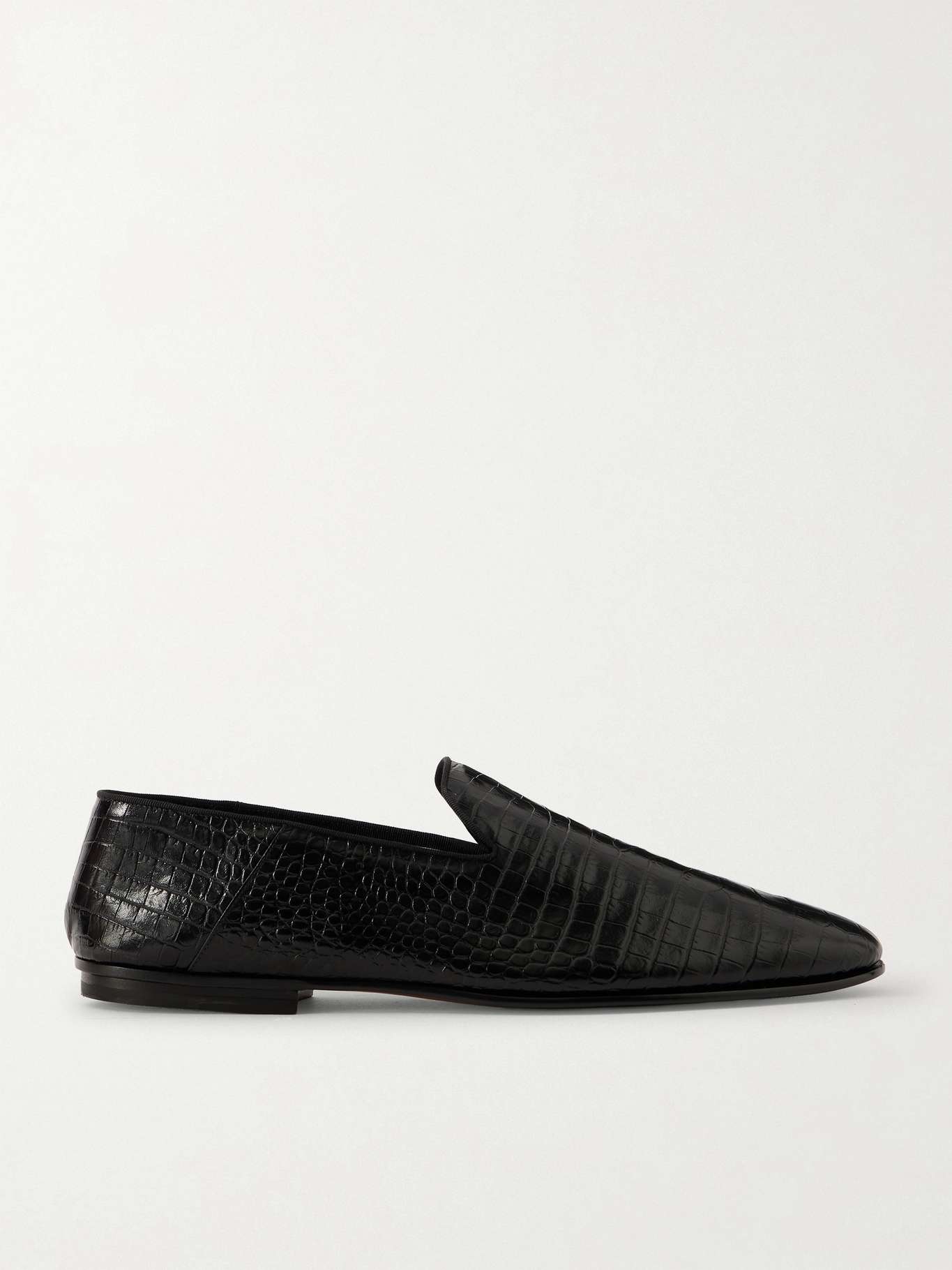 TOM FORD Steven Grosgrain-Trimmed Croc-Effect Leather Loafers