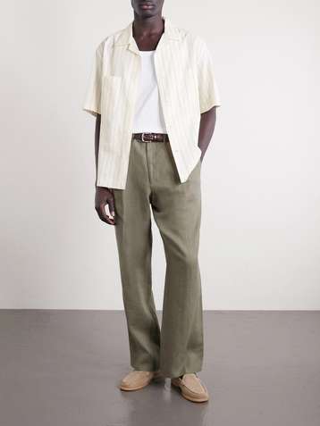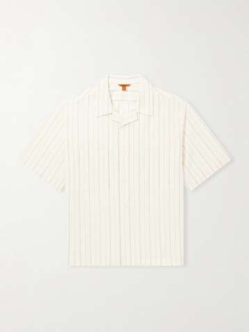 Cuban-Collar Garment-Dyed Striped Cotton-Poplin Shirt