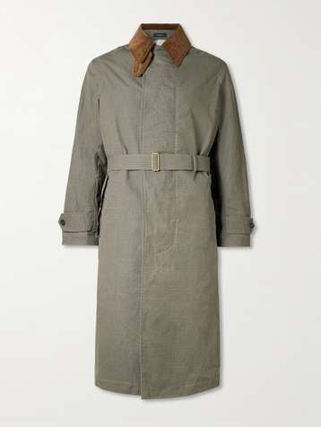 + HIM Rider's Belted Corduroy-Trimmed Cotton-Ripstop Coat