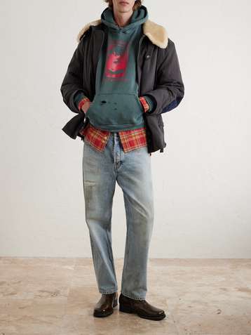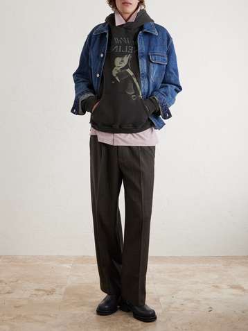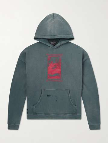 Psychothérapie de L'adolescent Printed Distressed Cotton-Jersey Hoodie