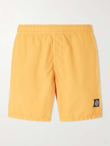 Straight-Leg Mid-Length Logo-Print Shell Swim Shorts