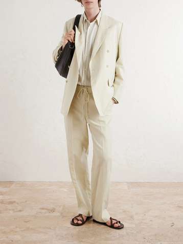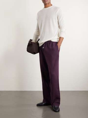 Straight-Leg Wool, Cotton and Linen-Blend Oxford Drawstring Trousers