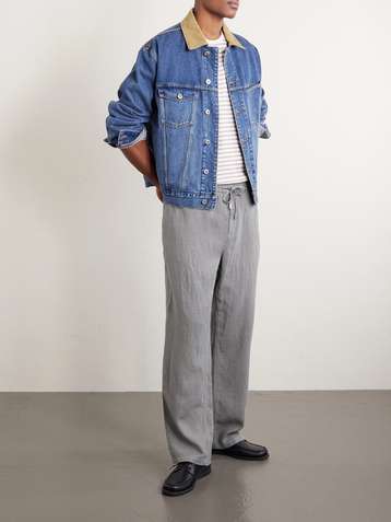 Straight-Leg Garment-Dyed Linen Drawstring Trousers