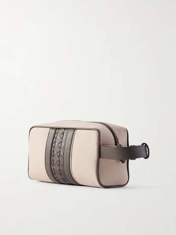 Full-Grain Leather-Trimmed Canvas Wash Bag