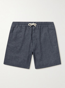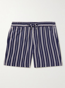 Sitting pretty in the spot between swim shorts and tailored shorts, these striped cotton-twill shorts from Mr P. are just perfect for those days at the beach when you have absolutely no intention of going into the water. With a drawstring waist that offers the flexibility and comfort of swimmers and a pinstripe pattern that echoes collegiate and varsity style, they’re our go-to this Labor Day weekend.