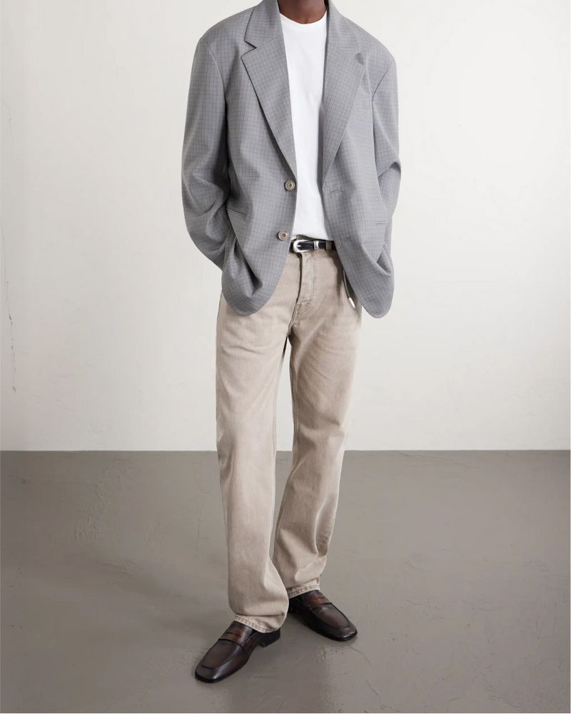 “With menswear becoming a little more generous in cuts and looser silhouettes, straight-cut denim complements longer-line blazers or lightweight chore jackets,” Scourfield says. “They also look good with an untucked camp-collar summer shirt.”