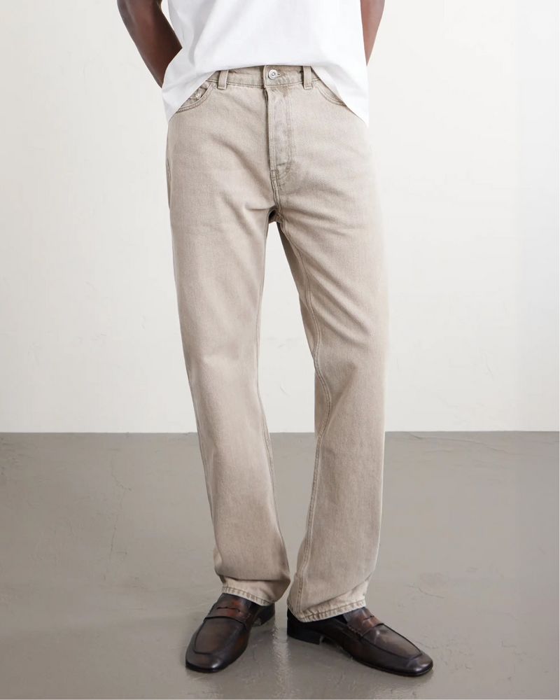“Being less restrictive, a straight cut is suitable for most body shapes,” Scourfield says. “Having more room around the thighs and down through the leg makes them a good choice for both tall guys and athletic bodies.” The straight fit, he adds, is also endlessly age-appropriate, even if you do have gym-hewn calves to show off. Scourfield suggests pairing straight-cut denim with low-key sneakers, boxy white tees and simple jersey sweats.