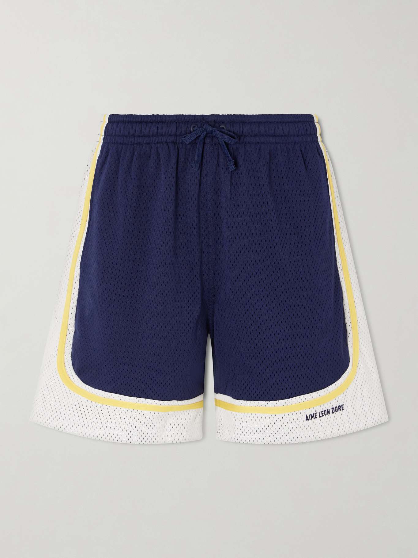 AIMÉ LEON DORE Novelty Straight-Leg Logo-Embroidered Mesh Drawstring Shorts