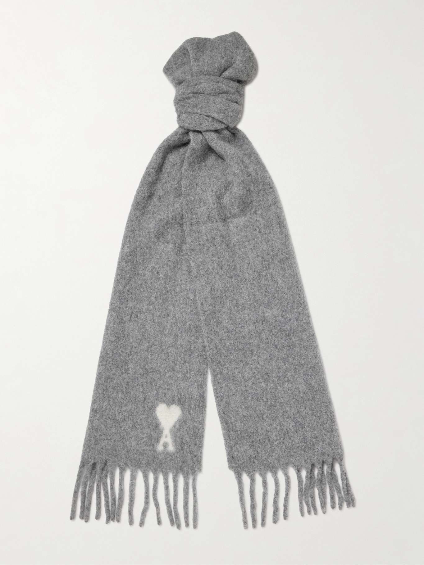 Bundling up in AMI PARIS' scarf feels like a luxury, not just a necessity. It's knitted for an oversized profile from fuzzy alpaca-blend and features the recognisable intarsia logo and wispy fringed ends.