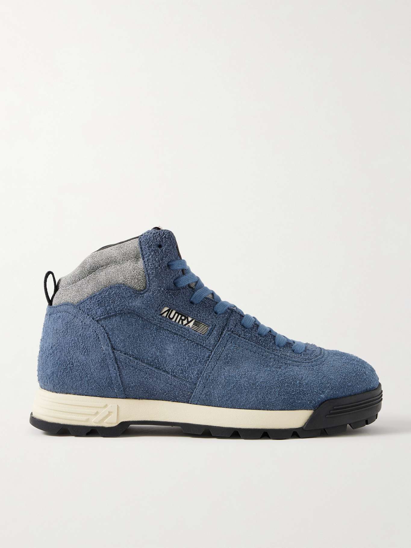 Autry's 'Malga' hiking boots are designed for outdoor adventures. Inspired by retro styles, they're made from suede, treated with a wind- and waterproof Alpha Skin membrane, and trimmed with grey along the padded collars. Thick rubber soles with lugged tread provide plenty of traction.