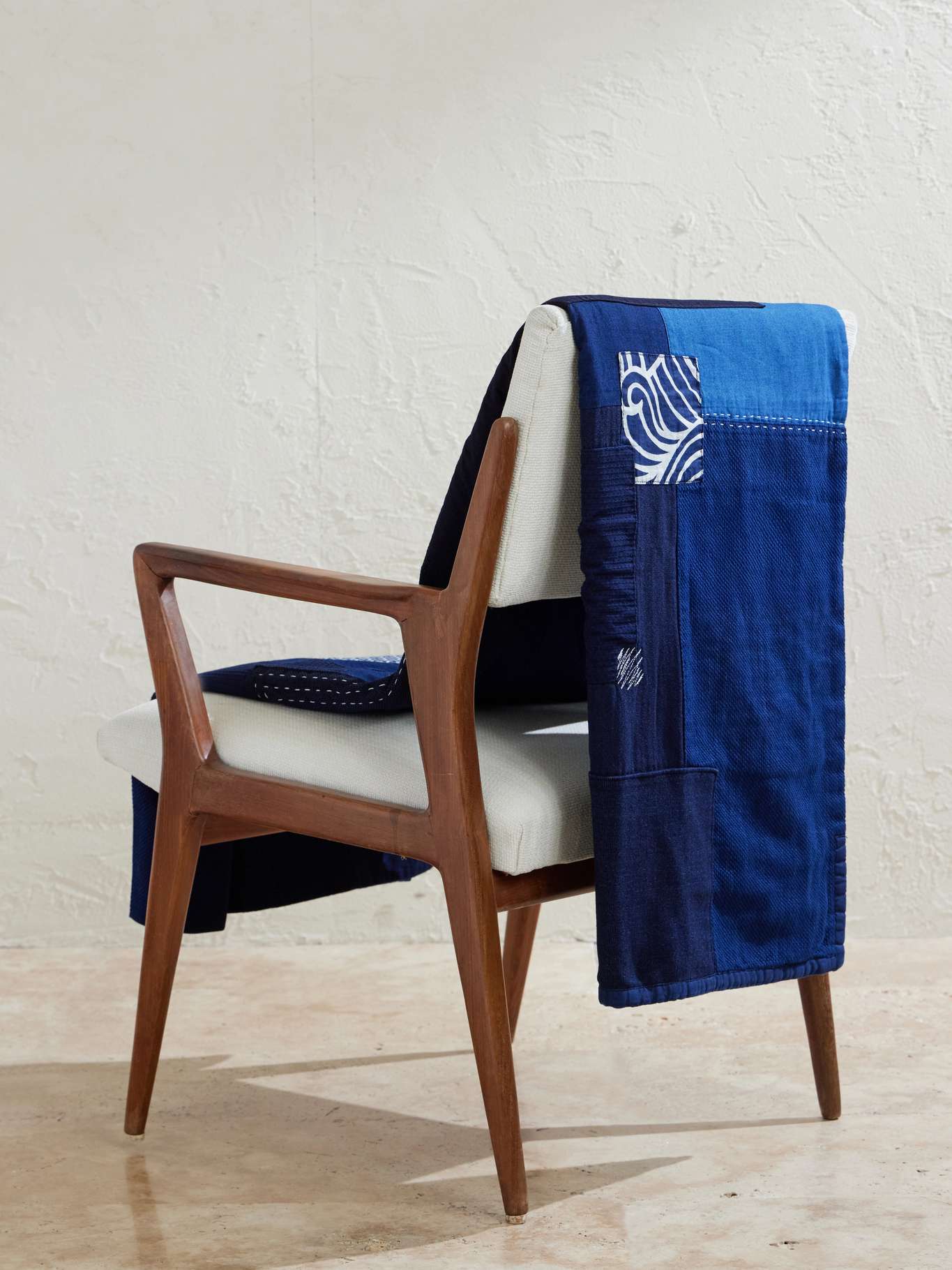 Blue Blue Japan's 'Nenrin' blanket is woven from indigo-dyed fabric, giving it rich depth with subtle tonal variation. The patchwork-style composition adds texture and visual interest, while the construction keeps it substantial yet easy to layer.