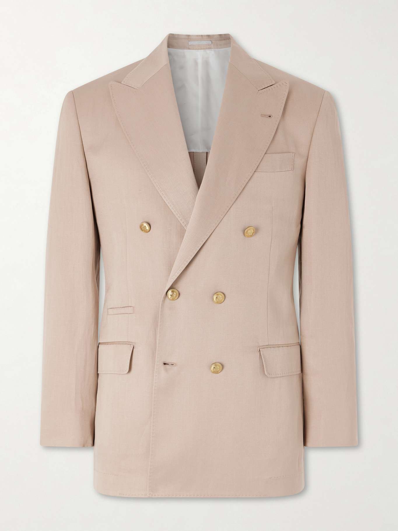 Grounded in a philosophy that extends beyond clothing, Brunello Cucinelli approaches design with a focus on material, balance and lifestyle. Cut from a silk and linen-blend twill with a subtle sheen, this double-breasted blazer is partially lined and features shoulder padding for a sharp yet softly structured silhouette. Heraldic gold-tone buttons add a refined point of interest.