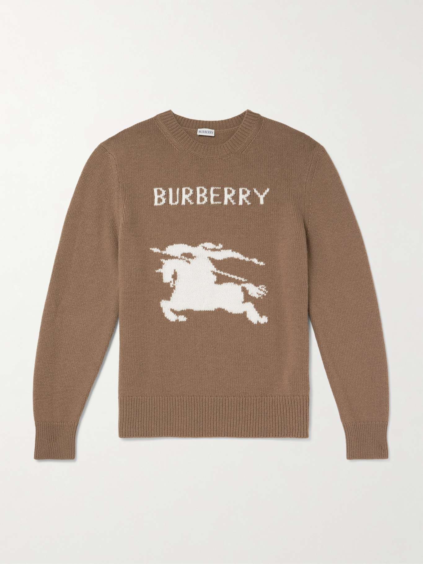Burberry's sweater is intarsia-knitted with its 'Equestrian Knight' motif at the chest. It's made from wool and cashmere-blend and has ribbed edges.