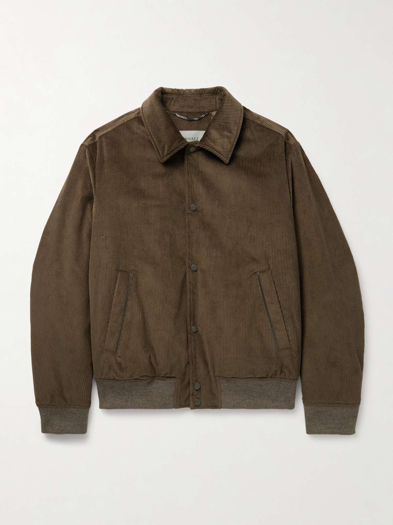 Canali's blouson jacket combines mid-century workwear with smart off-duty style. It's been made in Italy from wide-wale cotton-corduroy and is detailed with leather trims along the front welt pockets.
