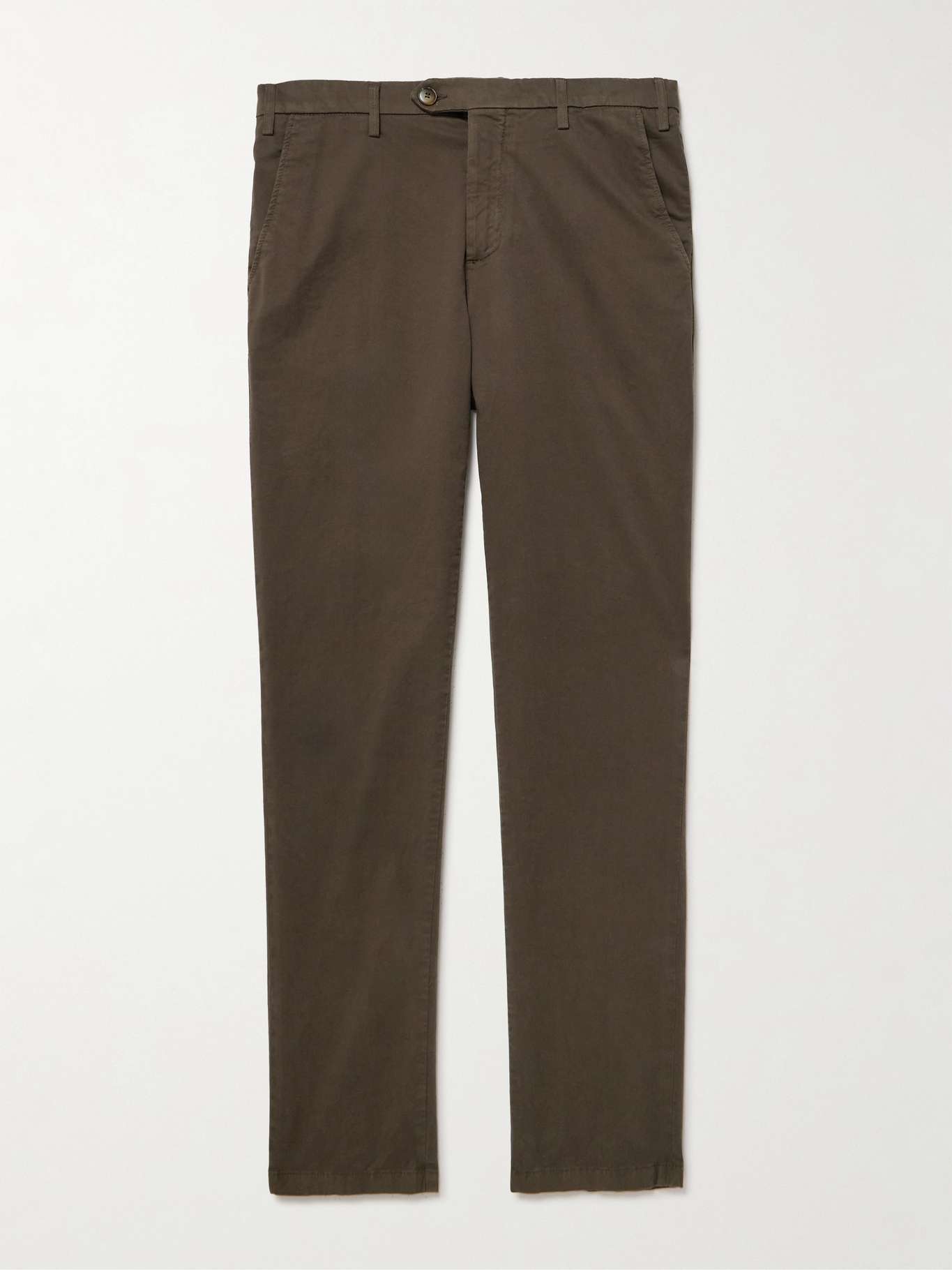 Canali's trousers are cut from cotton-blend micro-twill, offering comfort and flexibility. They have a clean, flat-front profile and taper slightly at the hems.