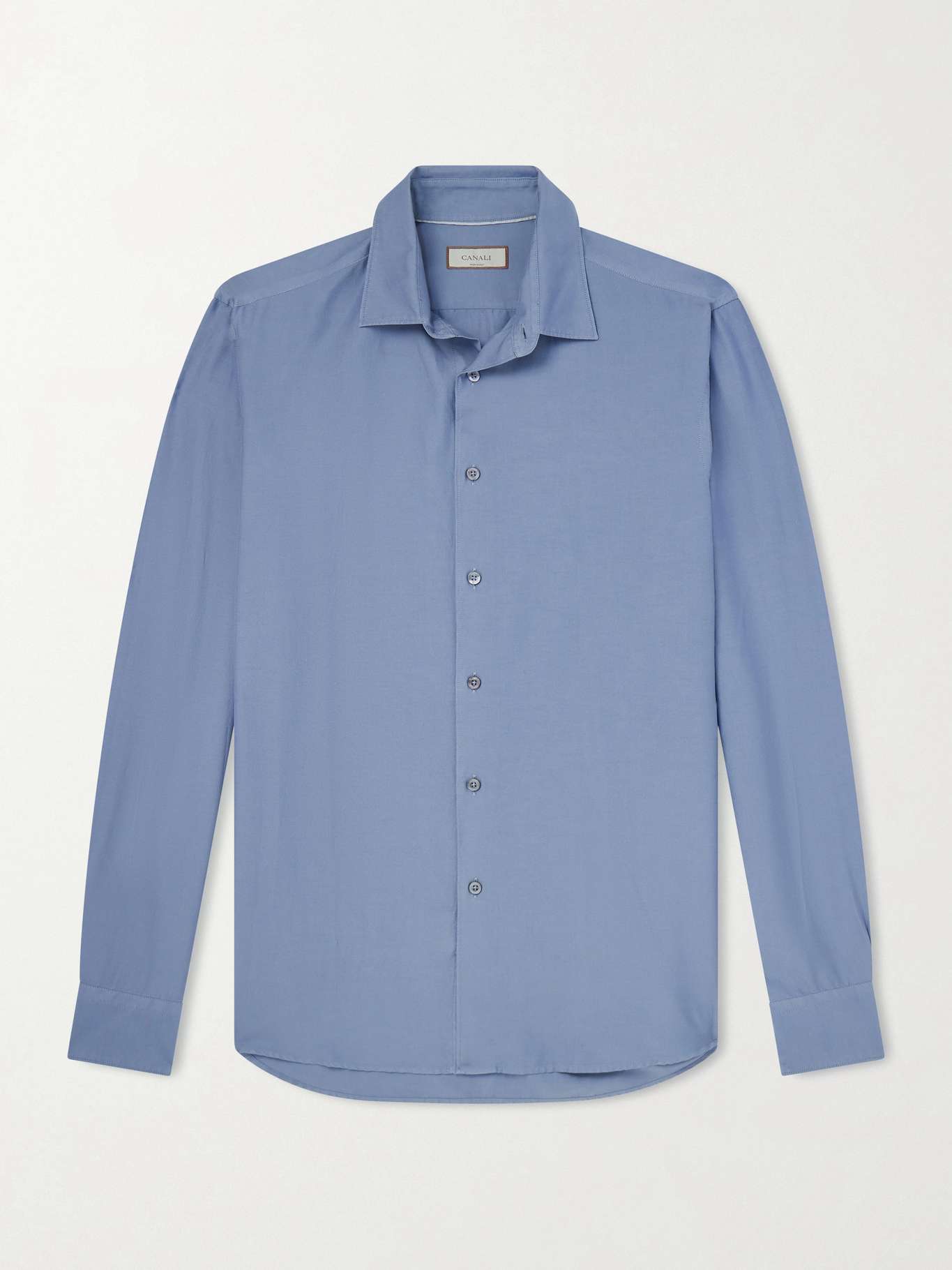 Canali has remained family-run for more than 90 years. A testament to its tailoring experience, this shirt is made from a lightweight blend of cotton and silk and garment-dyed for enhanced softness and depth of colour. Mother-of-pearl buttons provide a touch of lustre.