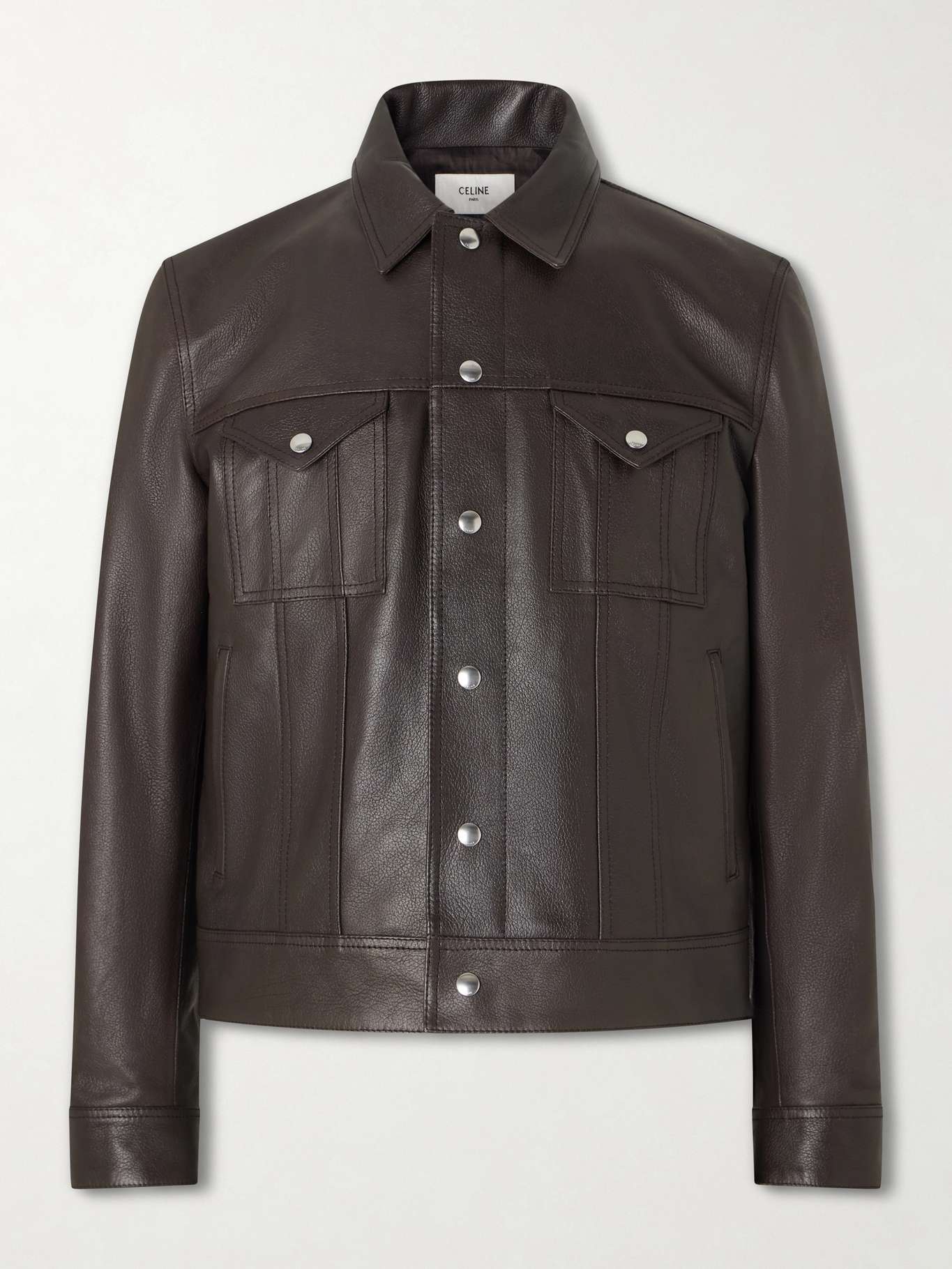 CELINE reinterprets the classic trucker jacket with a sharp perspective. Made from smooth leather, it’s cut in a structured fit with clean lines that lend the silhouette a confident, contemporary edge.