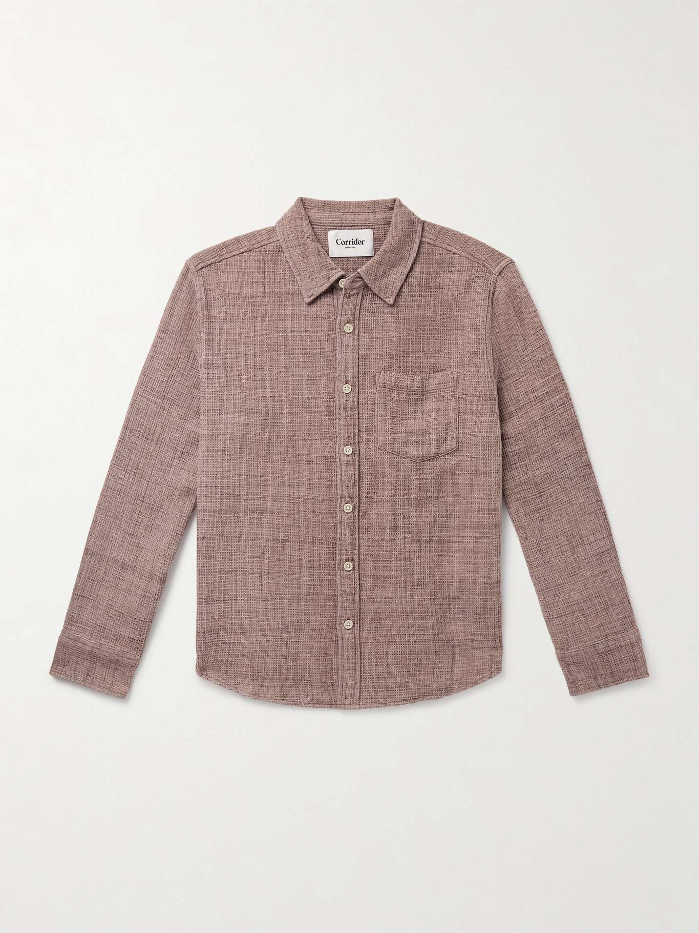 Corridor's shirt will add plenty of texture to any casual outfit. It's waffle-knitted from soft cotton in a soft 'Dusk' hue and features a patch pocket at the chest.