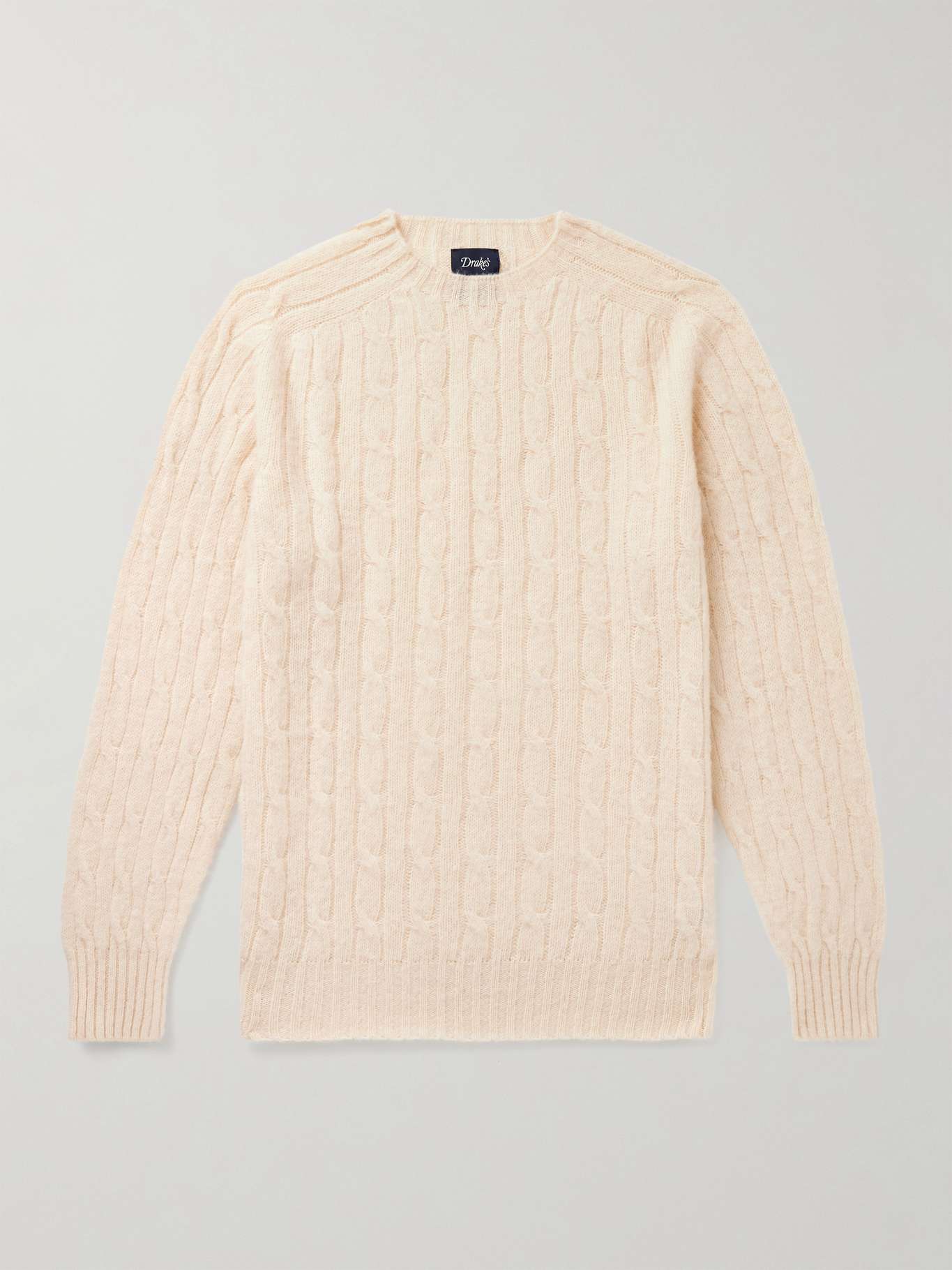 Drake's cable-knit sweater is inspired by a vintage, handmade style from the 1930s. Featuring ribbing along the shoulders, it's been crafted in Scotland from insulating wool that's brushed for an even softer handle.