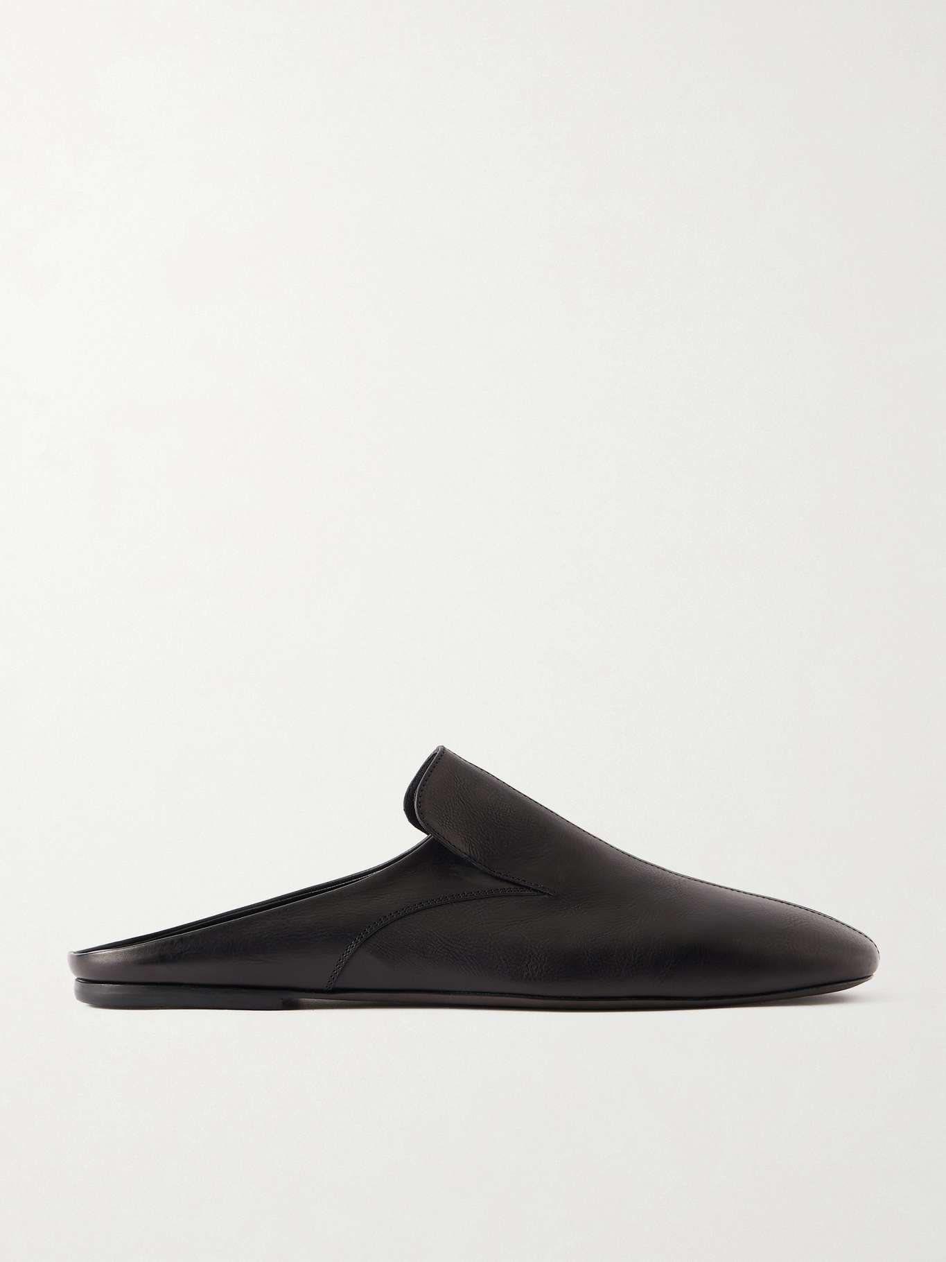 Dries Van Noten's slip-on shoes are a smart, streamlined take on mules. Made from black leather with a subtle grain, they have slim soles and gold foil emblems on the footbeds.