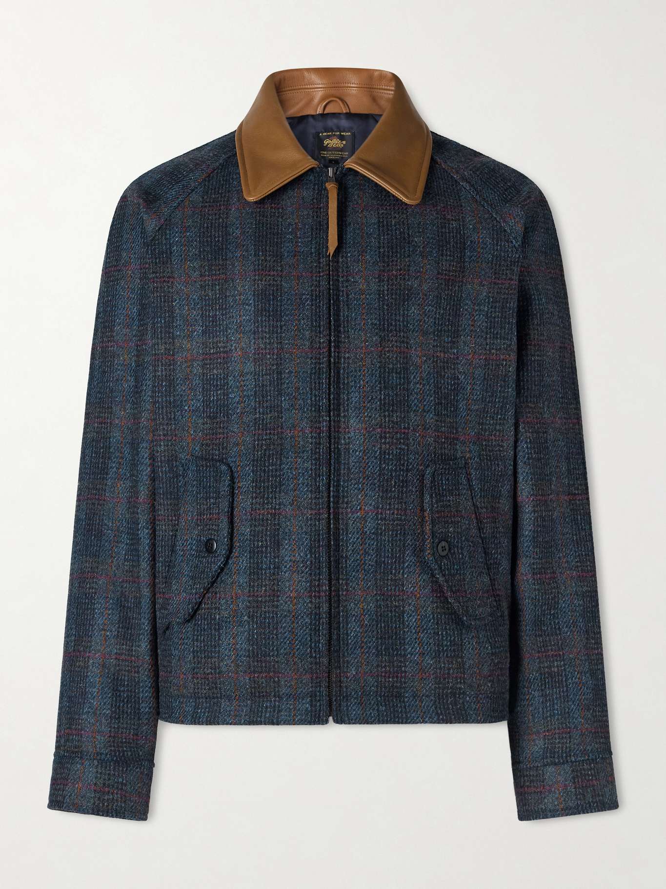 GOLDEN BEAR Dunbar Harris Leather-Trimmed Checked Wool Jacket