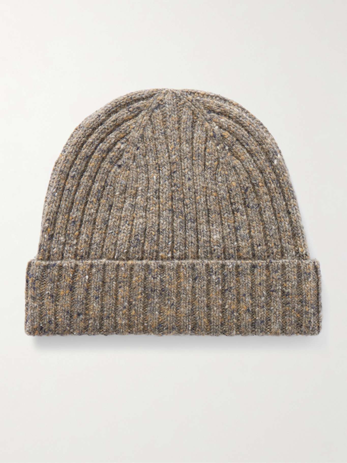Hartford's beanie is flecked with multicoloured yarns, inspired by the look of traditional Donegal styles. It's rib-knitted from a wool-blend and has a foldover cuff to adjust the fit.
