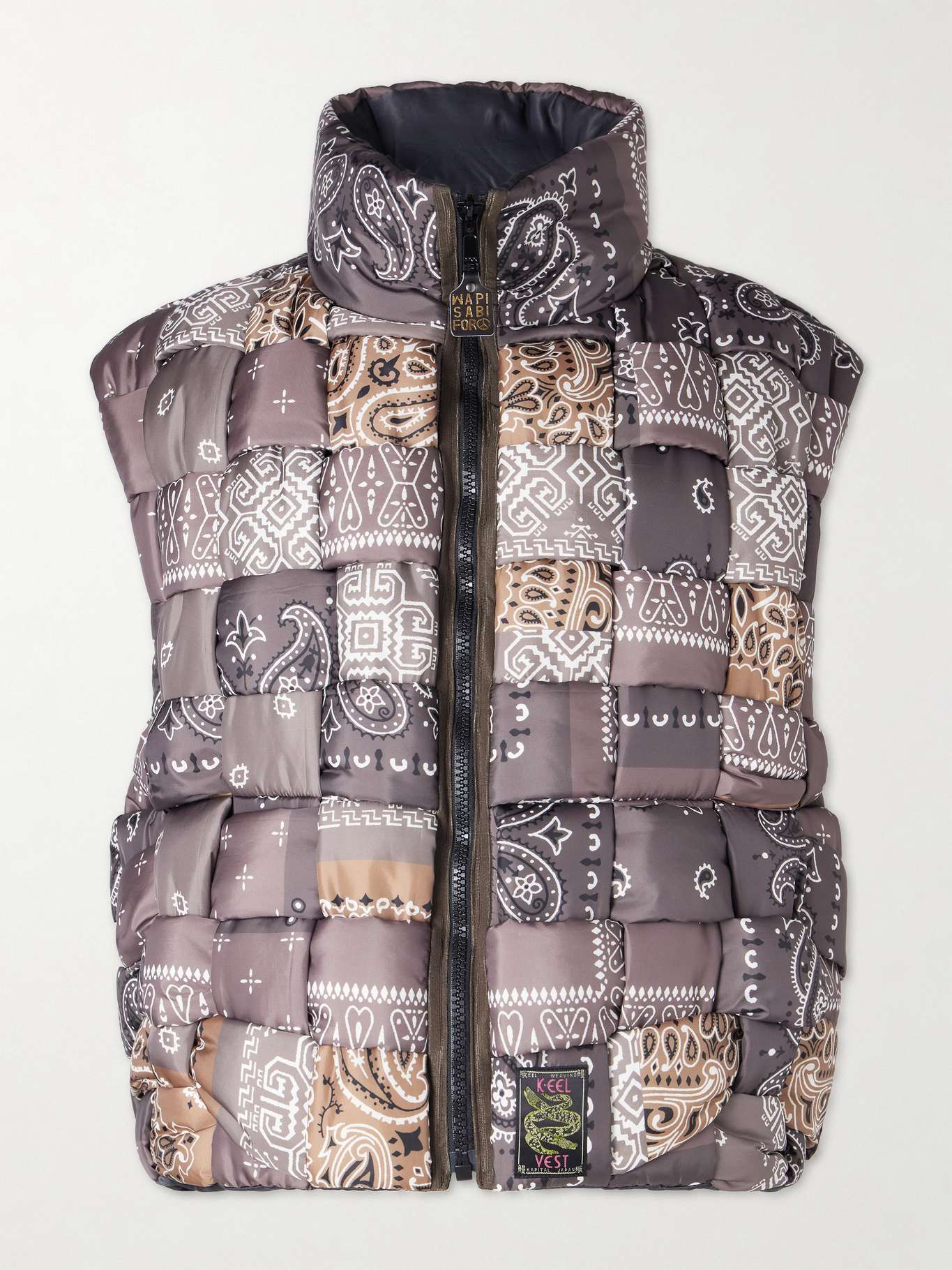 KAPITAL Quilted Patchwork Bandana-Print Shell Gilet