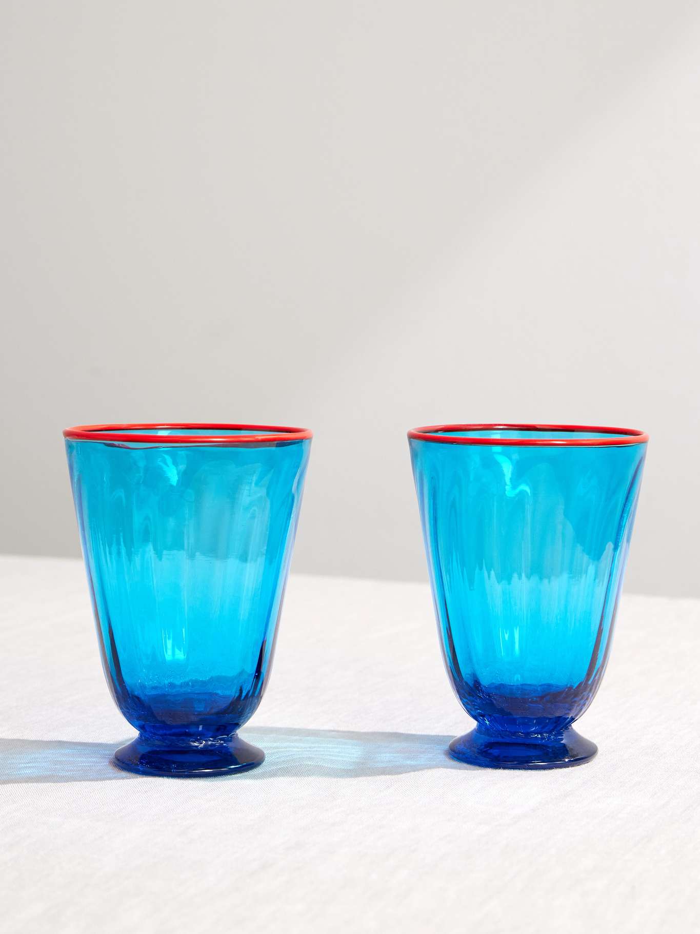 Handblown in Venice, La DoubleJ's set of two Murano glasses have a gently ridged surface with a contrasting rim. Variations in marks, rings or bubbles are part of the production process – making each one unique.