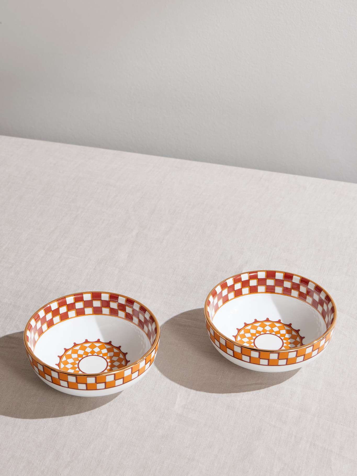 La DoubleJ says its vibrant collections are guided by "the ebullient Italian way of life". This set of two snack bowls has been made by skilled Venetian craftspeople from Italian porcelain and is decorated with a vibrant geometric pattern inspired by Apollo, the ancient Greek and Roman god of the sun.