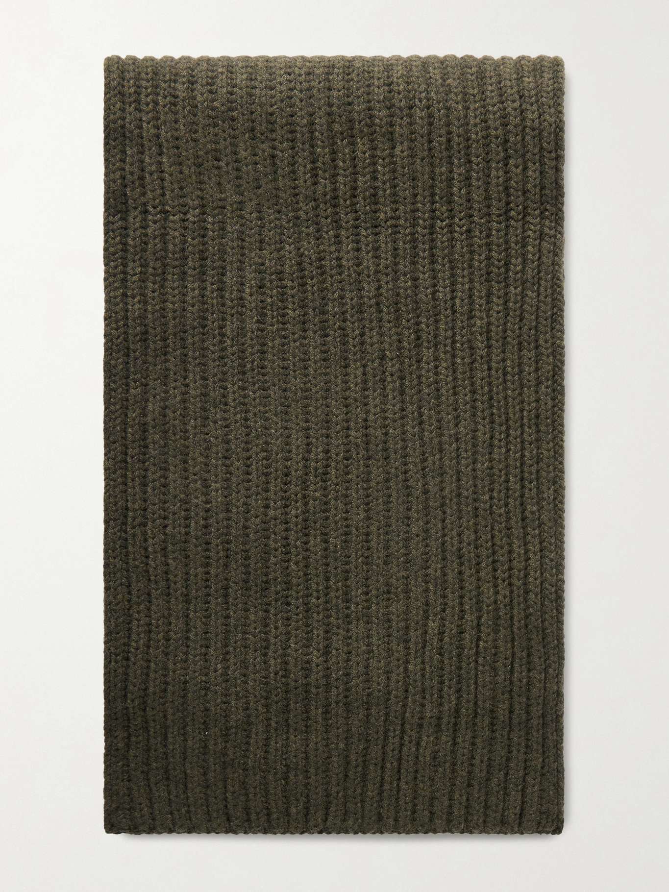 Loro Piana's scarf has been made in Italy from the brand's signature cashmere. It has a chunky ribbed finish and comes in an earthy green that'll go with most of your outerwear.