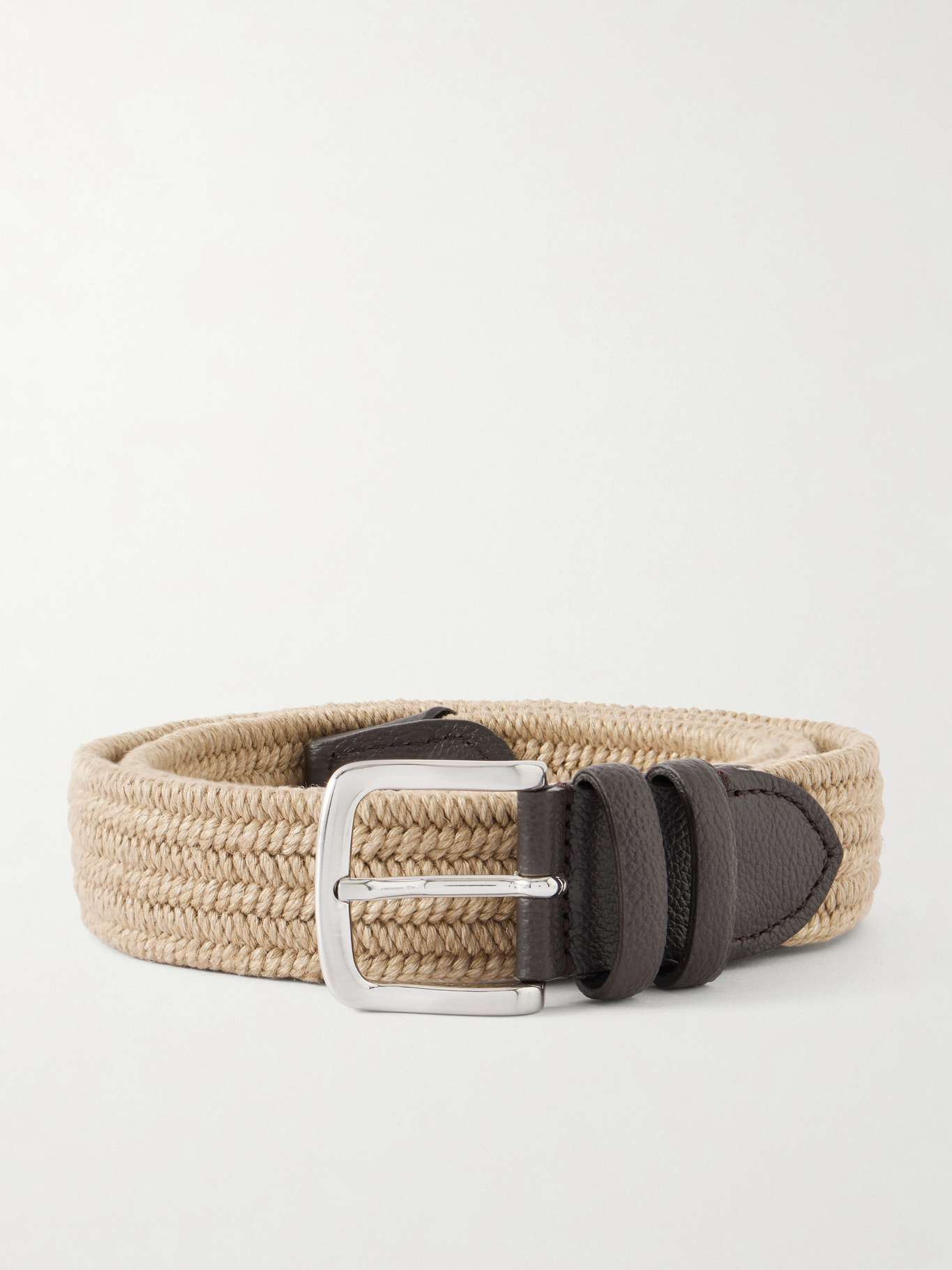 MR P. 3.5cm Leather-Trimmed Woven Belt