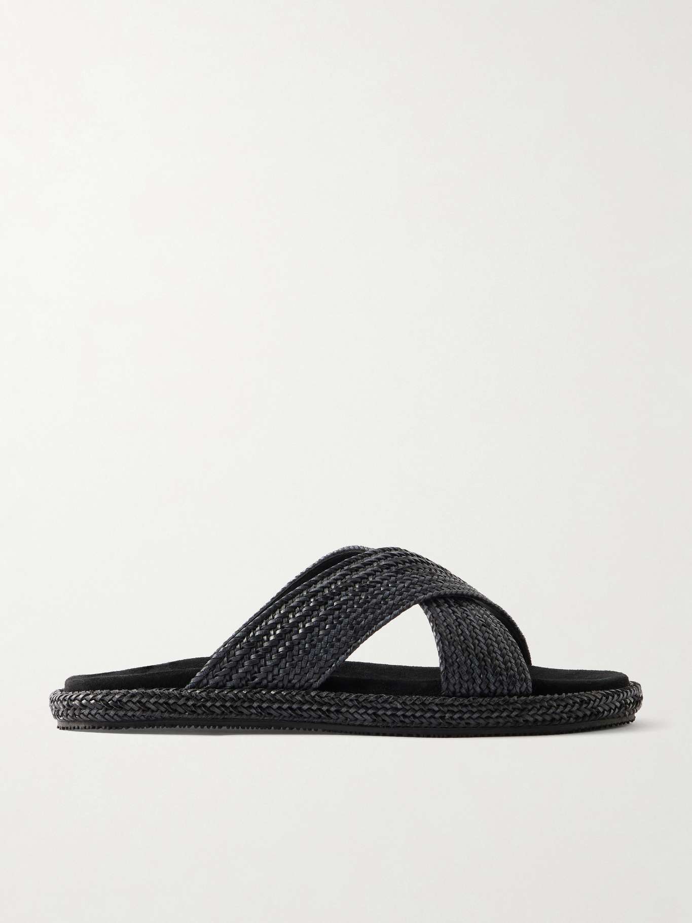 DESIGNED BY MR PORTER. Mr P.’s crossover sandals are crafted in Italy from full-grain vegetable-tanned ‘vacchetta’ leather that will develop a rich patina over time. They feature wide crossover straps and a padded calf suede footbed for comfort, set on a stacked leather wedge sole that adds subtle height while keeping the look refined.