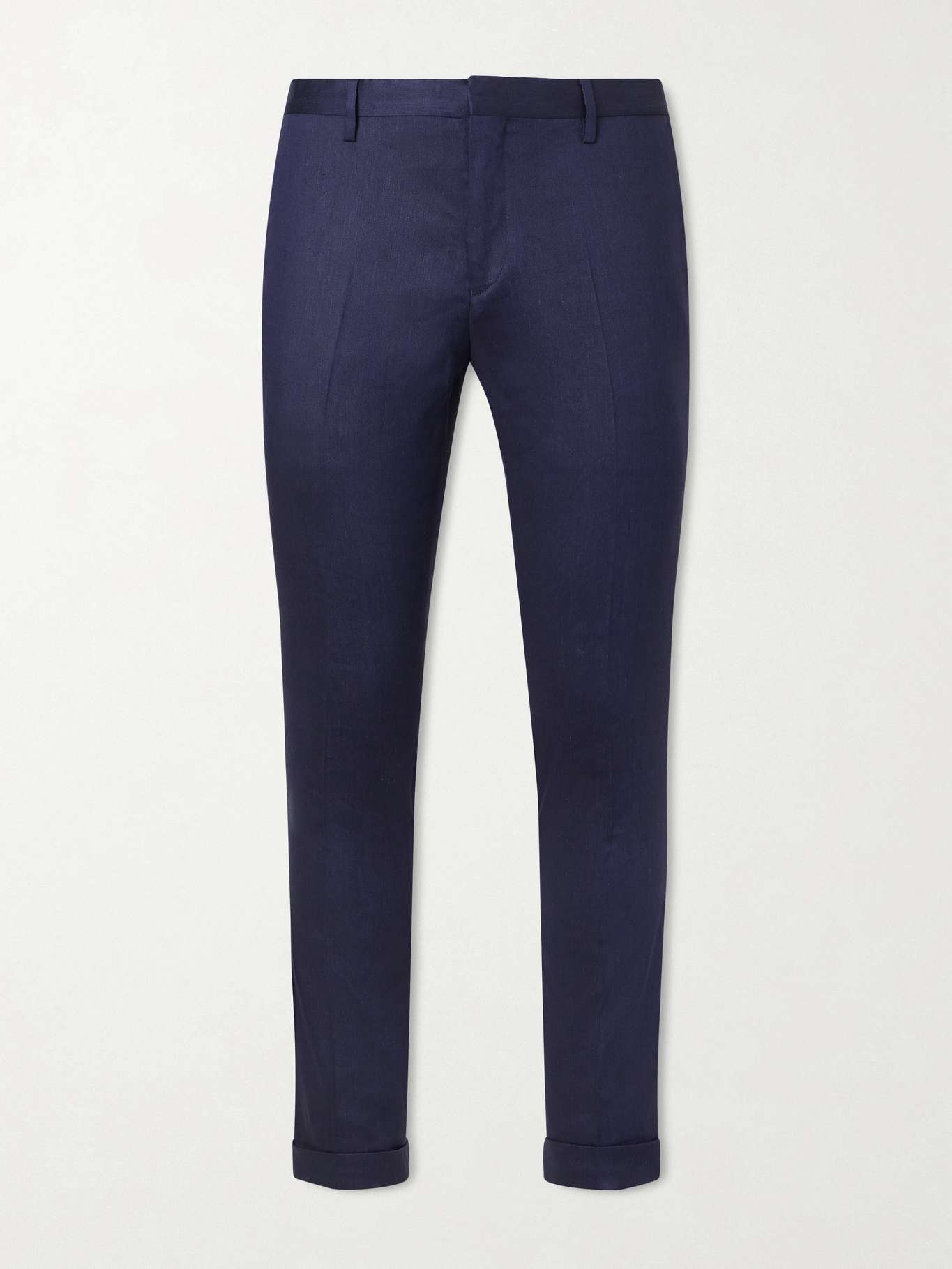 Paul Smith's trousers are tailored from linen and wool that's blended with a touch of stretch. The slim legs are gently pressed through the front and fall to neat turn-up hems.