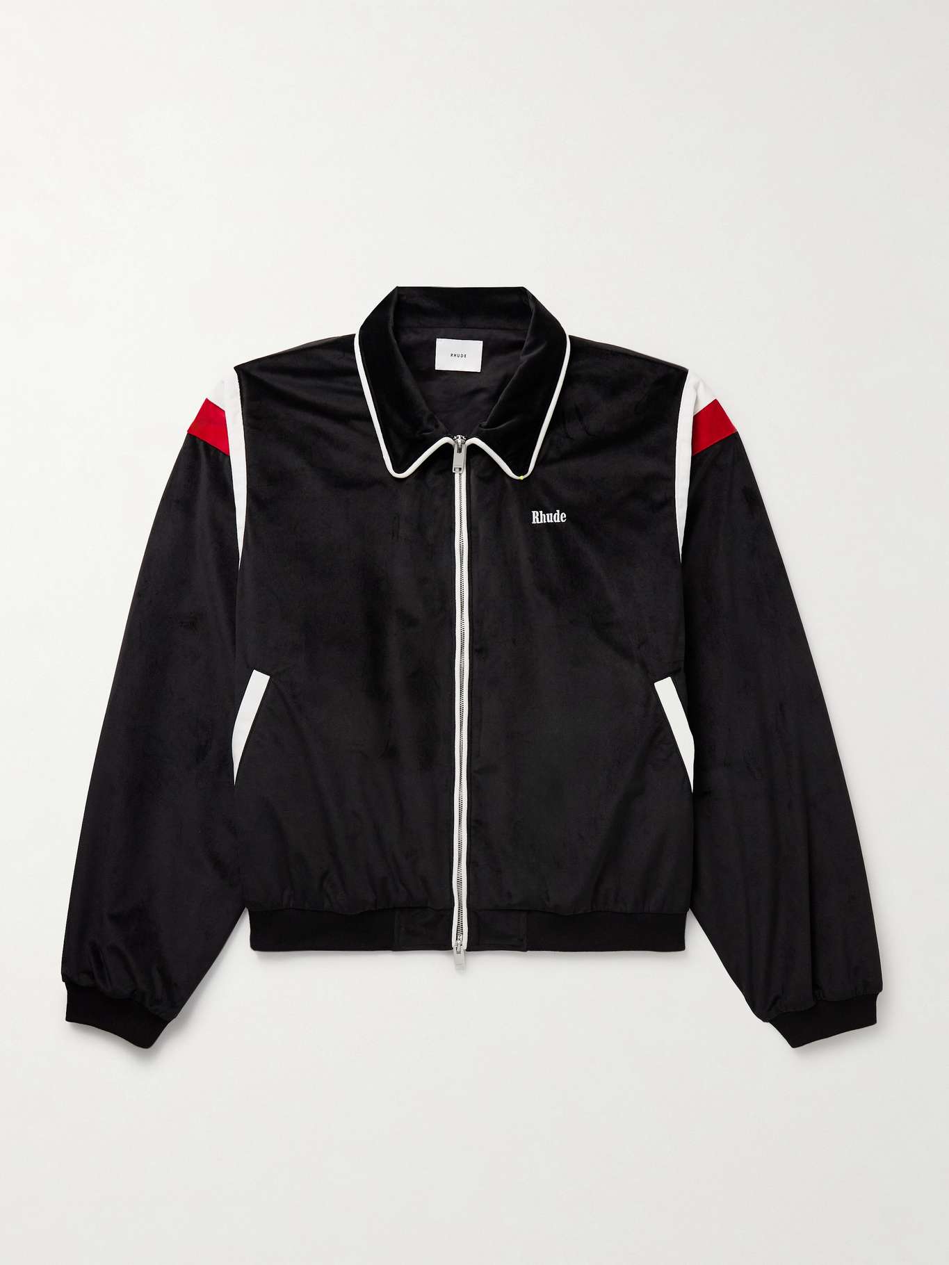 Rhude's 'Mancino' track jacket is reminiscent of vintage varsity styles. Cut from smooth velour, it's trimmed with sporty stripes along the shoulders and embroidered with the brand's moniker at the chest.