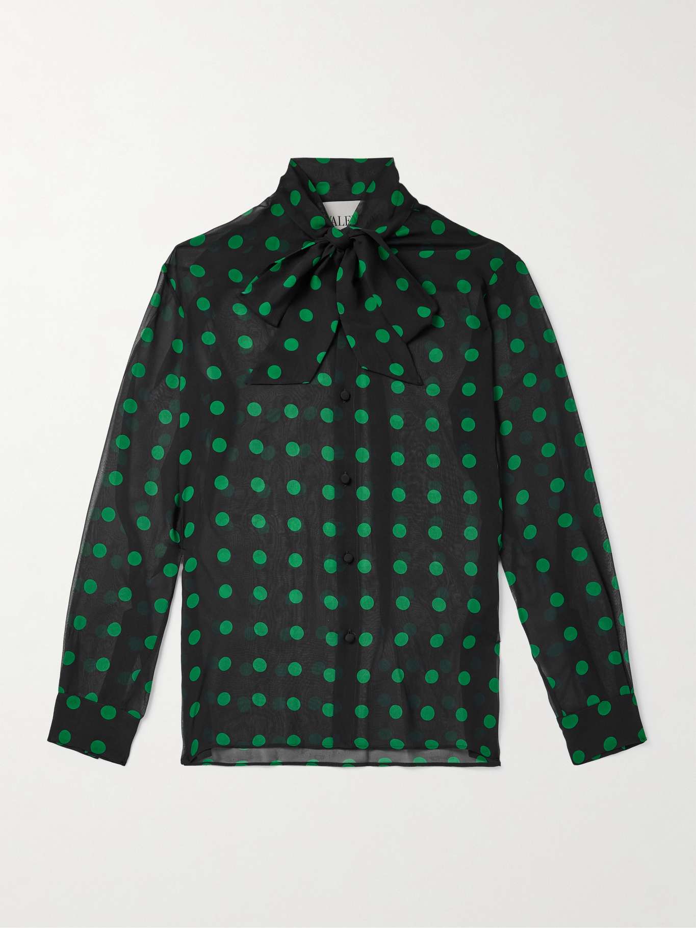 Valentino Garavani's shirt has classic pussy-bow ties for a retro feel. Made from wispy silk-georgette, it's patterned with polka-dots and has a fluid shape with a streamlining concealed placket. Take styling cues from the likes of Harry Styles and tuck yours into a pair of the label's flared trousers.
