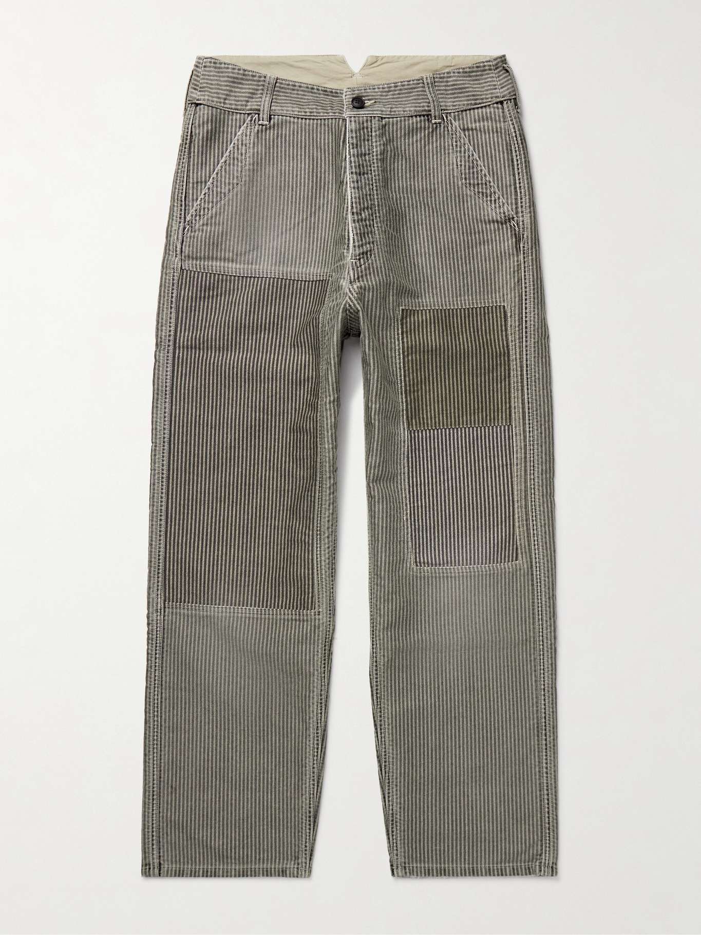 visvim's 'Pastoral' trousers are cut from panels of cotton-moleskin for a workwear-inspired look. Woven with tonal-grey stripes, they have a classic straight-leg fit and an adjustable, notched waistband.