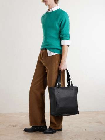 Loop Logo-Debossed Full-Grain Leather Tote Bag