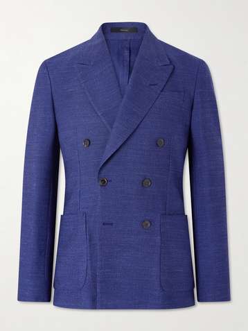 Wool, Linen and Silk-Blend Double-Breasted Blazer