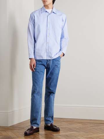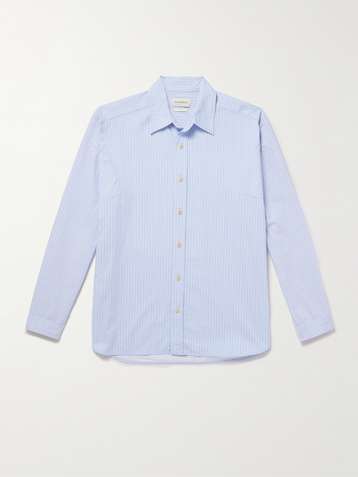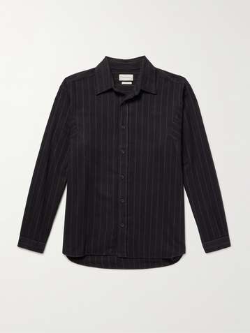 + Aaron Levine Nick Grandad-Collar Striped Cotton Shirt