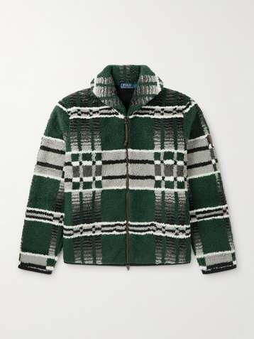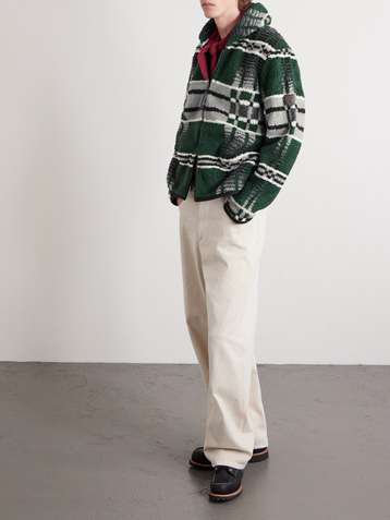 Shawl-Collar Checked Woven Zip-Up Cardigan