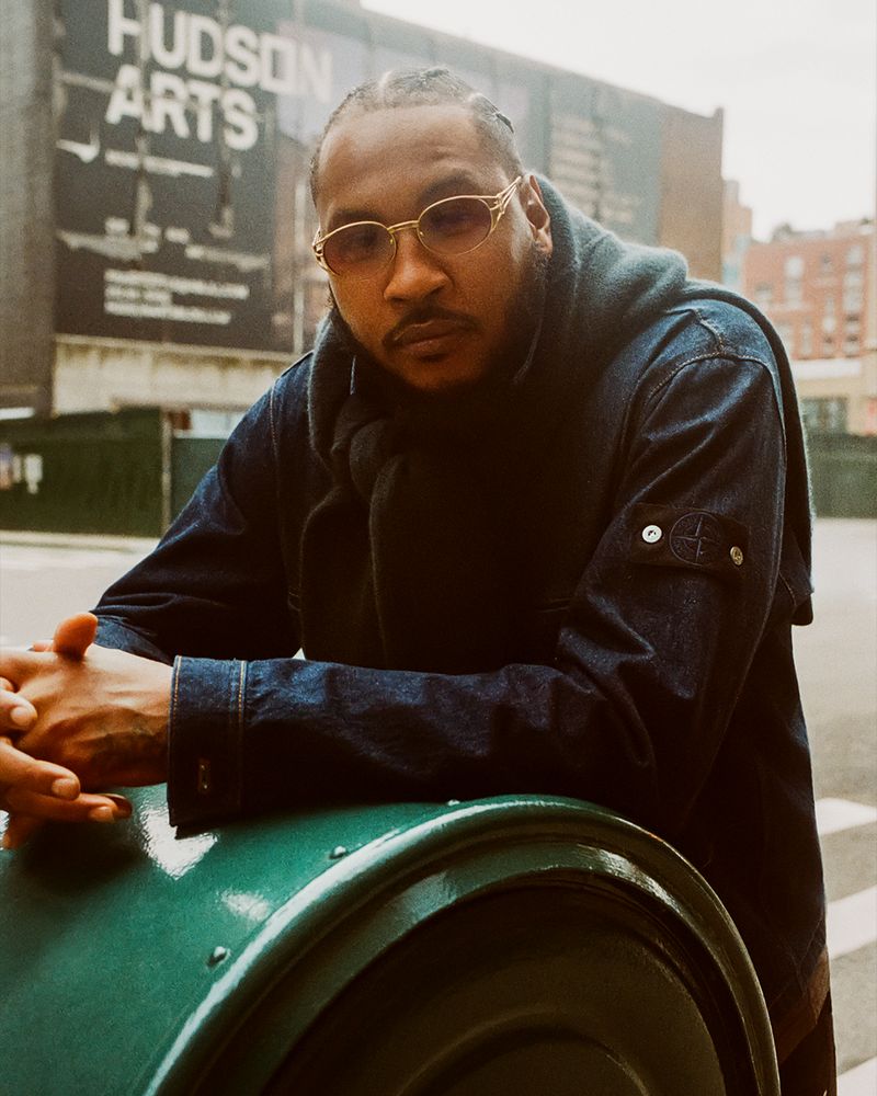 Given Anthony’s towering frame, Stone Island’s sizeable options sure help. Whether that comes by way of double denim, part of the brand’s new Denim Research capsule, or of its signature weatherproof jackets.